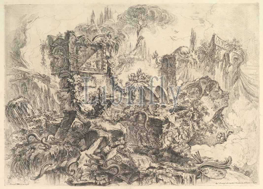 Tomb, Nero, Grotteschi, Grotesques, ca, 1748, Etching, engraving, drypoint, scratching, second state, six, Robison, Sheet, 19 1/2 x 25 3/16, 49.5 64 cm, Prints, Giovanni Battista Piranesi, Italian, Mogliano Veneto, 1720–1778, Rome