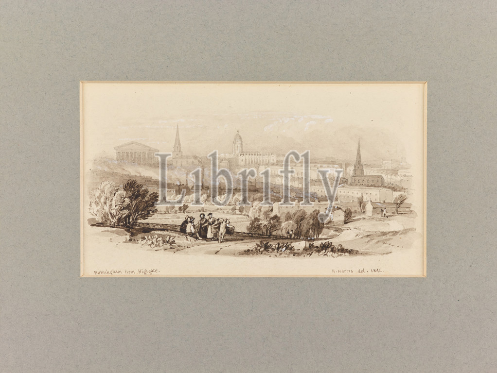 Topographical view, Birmingham, Ink Drawing, Birmingham, Highgate, 1842, Henry Harris, Social history, Topographical Views, England, Midlands