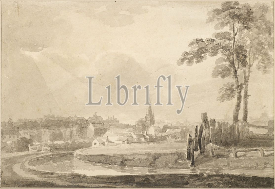 Topographical view of Birmingham, Ink Wash Drawing St Martin's Church, Bull Ring, Birmingham from the River Rea By Samuel Lines Snr, Social history, Topographical Views, England, Midlands