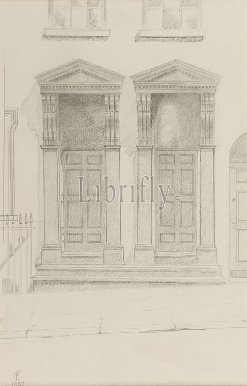 Topographical view of Birmingham, Pencil Drawing Doorway of 15 & 9, Newhall St, Birmingham, By F. Chamberlain, Social history, Topographical Views, England, Midlands