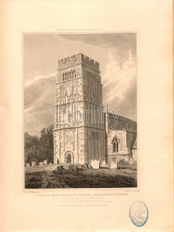Tower, Earls Barton Church, Northamptonshire, Saints' Church Tower, Earls Barton, Northamptonshire, signed, Drawn, F. Mackenzie, Etch'd, I. Le Keux, Published, Longman &, Co, Fig. 3, Pl. II, p. 260, Mackenzie, F., drawing, Keux, John Le, etching, Longman & Co., published, 1818, John Britton, architectural antiquities, Great Britain, represented, illustrated, series, views, elevations, plans, sections, details, various ancient English edifices, historical, descriptive accounts, Bd, 5, London, J, Taylor, 1807-1826