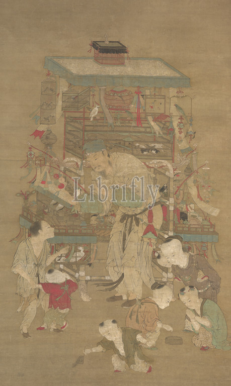 toy peddler, Ming dynasty, Ming dynasty, 1500s, ink and color on silk, 63-3/4 x 38-1/4 in. (image) 104-1/2 x 42-1/4 in. (mount) 46-1/2 in. (installation width), Asian Art