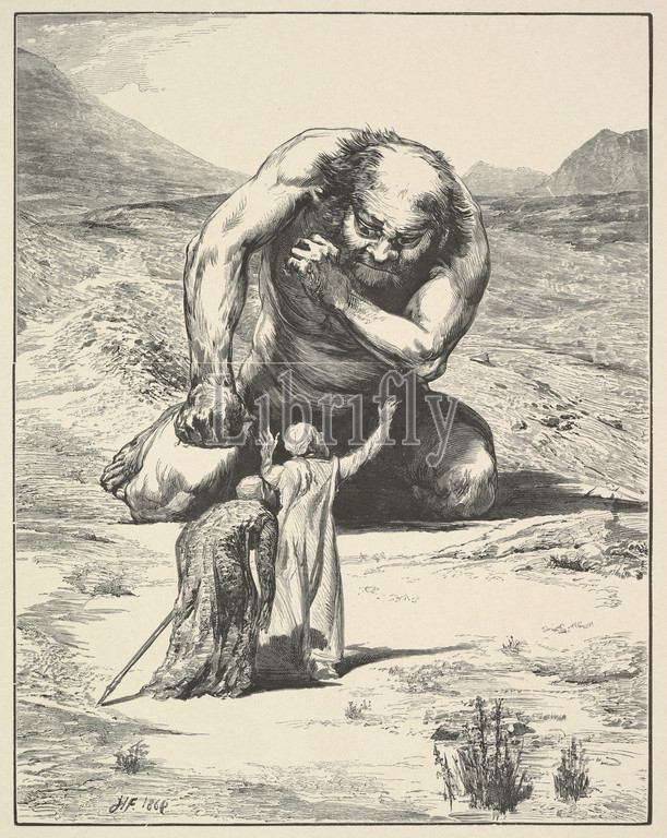 Travelers, Giant, 1869, Wood engraving, frame, 6 15/16 x 5 1/2, 17.6 13.9 cm, Prints, Designed by John La Farge, American, New York, 1835–1910, Providence, Rhode Island, Engraved Henry Marsh, 1826–1912