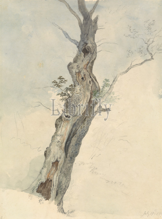 Tree Study, Robert Hills, 1769–1844, British, 1800, 1805, Watercolor, graphite, medium, slightly textured, cream wove paper, Sheet, landscape, study, visual work, tree
