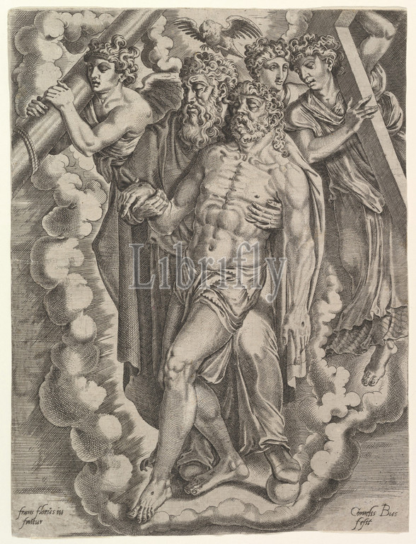 Trinity, Engraving, Sheet, 14 3/16 x 10 5/8, 36 27 cm, Prints, Cornelis Bos, Netherlandish, Hertogenbosch ca., 1510?–before, 1566, Groningen, After Frans Floris I