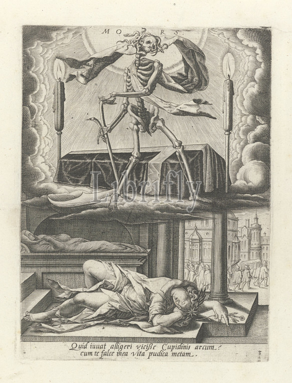 Triumph, death Mors, title, object, Six triumphs, Petrarch, series title, Latin caption, Trionfo della Morte, Triumphus Mortis, Carro della morte, Ripa, Death, skeleton, coffin, cortege, funeral procession, Matthäus Greuter, 1596, paper, engraving