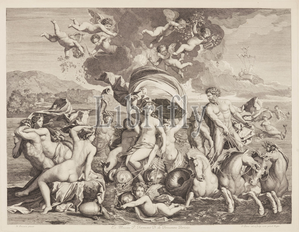 Triumph of Galatea, Jean Pesne (French), After Nicolas Poussin (French, 1594-1665), 17th century, ink on paper, engraving, 19-1/2 x 24-3/4 in. (image) 21-3/4 x 26-7/8 in. (sheet), plate inscribed: N. Poussin Pinxit Ex Musaeo P. Formont D. de Breuanne Parisys J. Pesne del et sculp. cum pruiet Regis