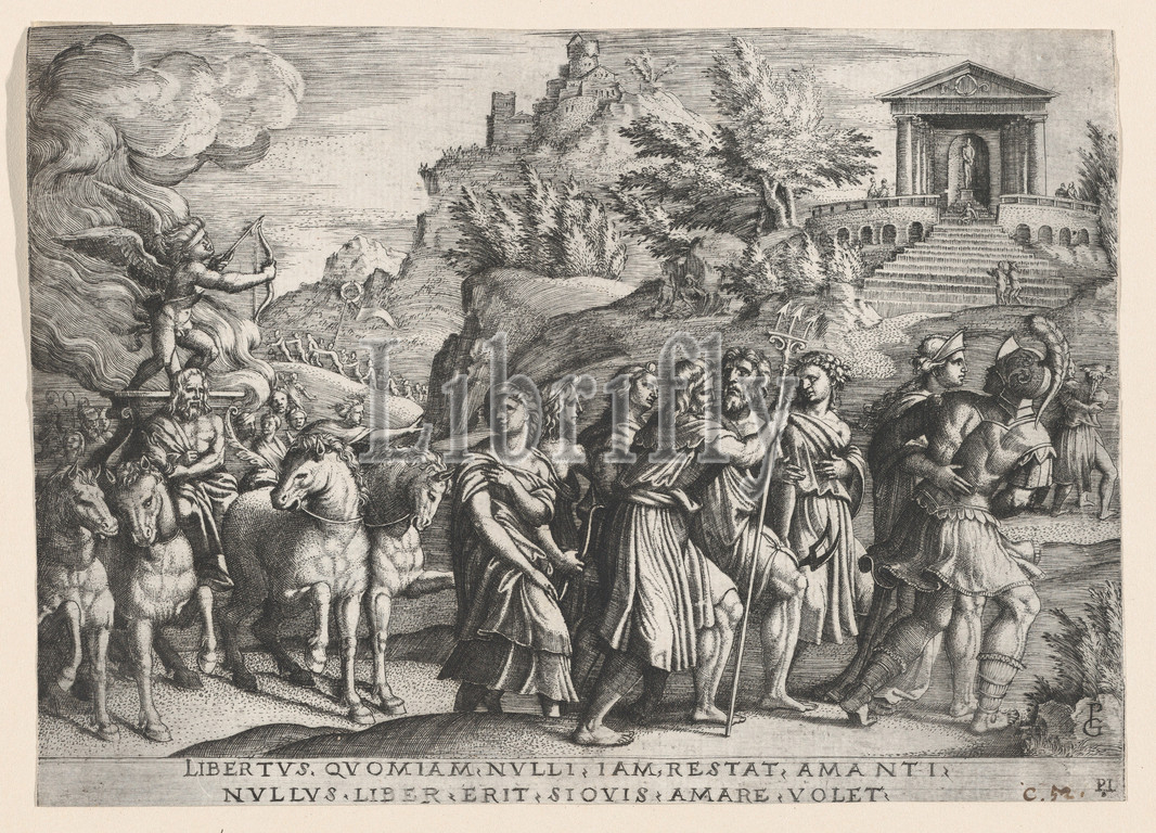 Triumph, Love, Petrarch, Engraving, Sheet, 6 1/16, 8 1/8, 15.4, 20.7 cm, Prints, Georg Pencz, German, Wroclaw ca., 1500–1550, Leipzig