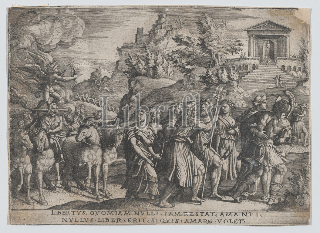 Triumph, Love, Petrarch, Engraving, Sheet, 6, 8 5/16, 15.3, 21.1 cm, Prints, Georg Pencz, German, Wroclaw ca., 1500–1550, Leipzig