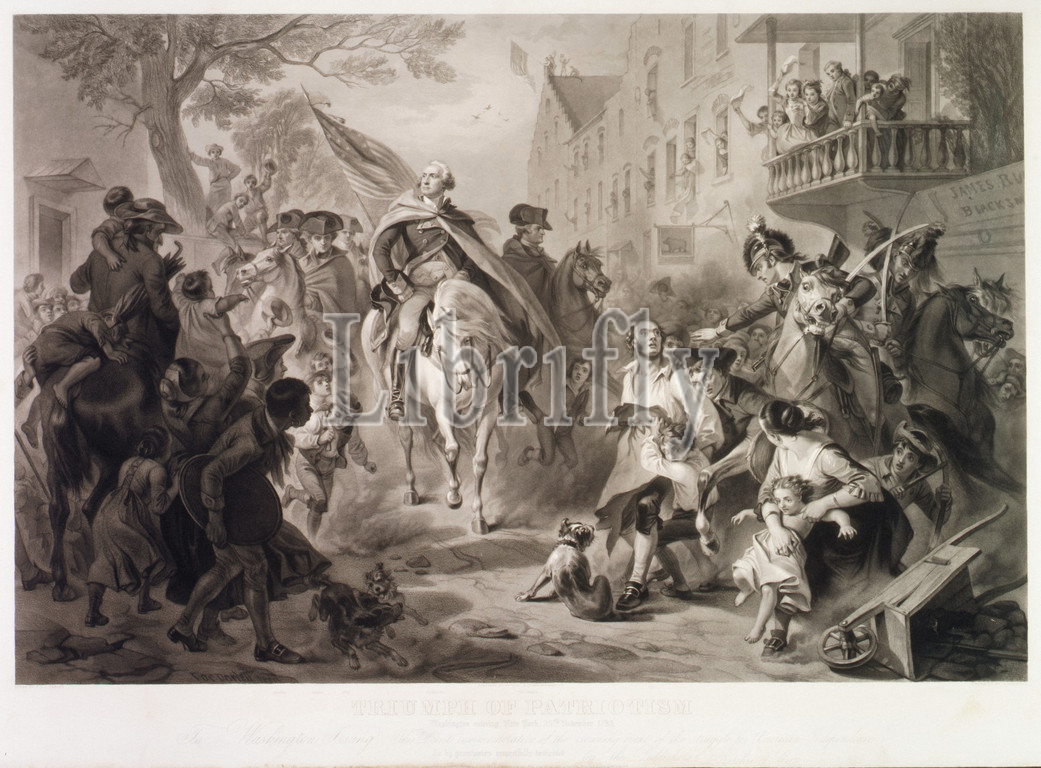 Triumph of Patriotism, Washington Entering New York, 25 November 1783, 1853, Engraving, stipple and etching, sheet: 27 7/8 x 38 5/8 in. (70.8 x 98.1 cm), Prints, Alexander Hay Ritchie (American, Glasgow, Scotland 1822–1895 New Haven, Connecticut), After Felix Octavius Carr Darley (American, Philadelphia, Pennsylvania 1822–1888 Claymont, Delaware)