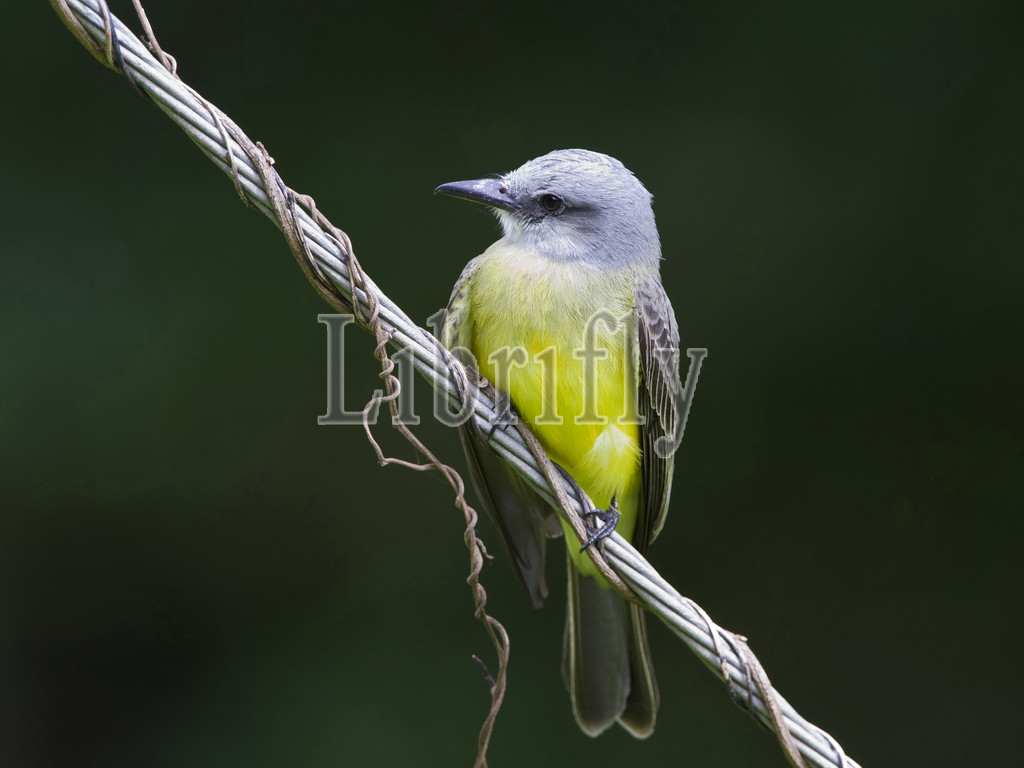 Tropical Kingbird perched at wire Tobago, Tyrannus melancholicus
