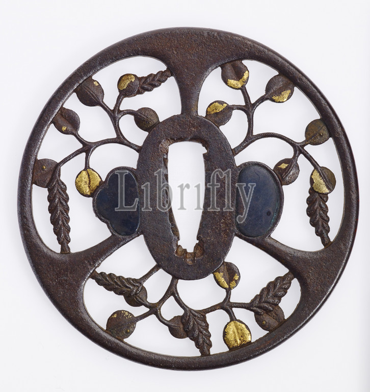 Tsuba, sword guard, openwork bush clover spray design, Edo, 1762, iron, 3-3/8 x 3-3/8, Japanese, Asian Art