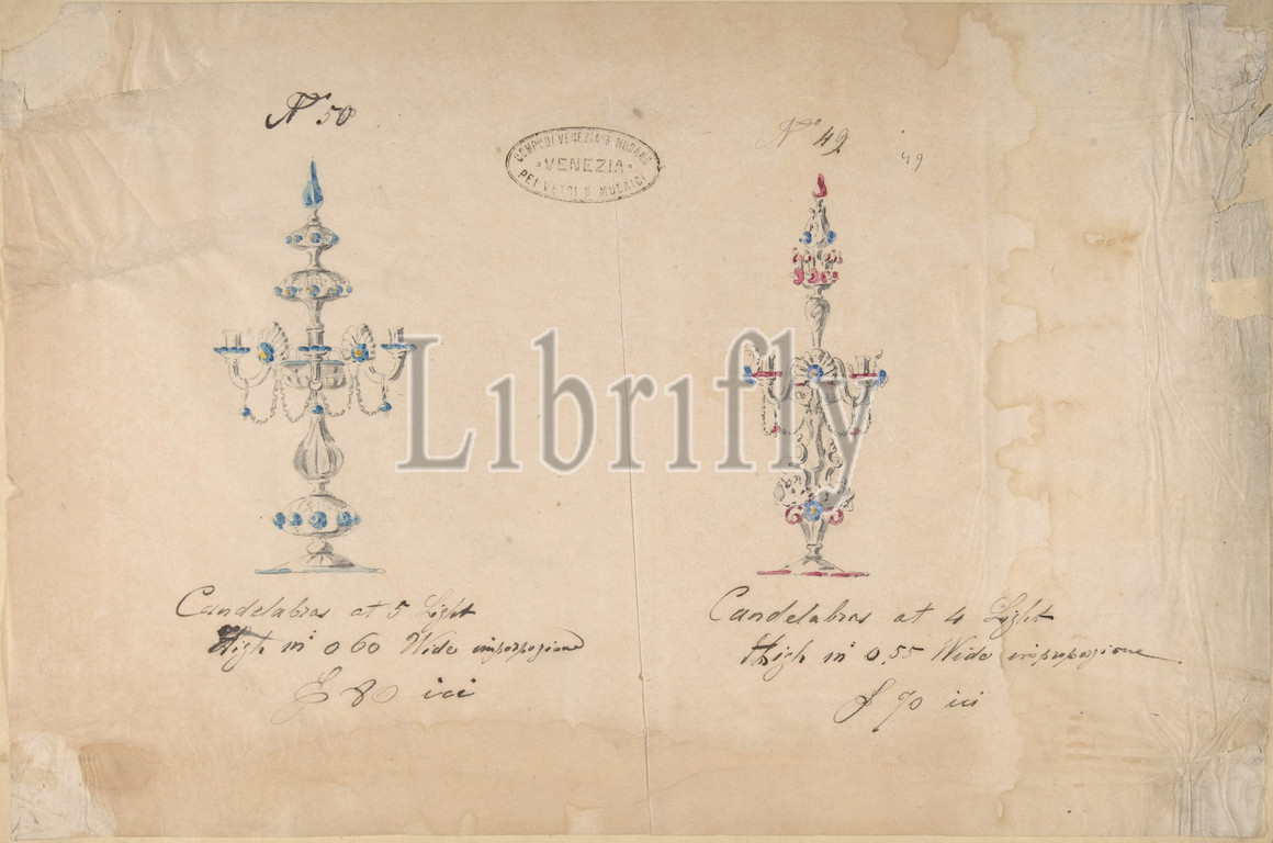 Twenty-Three Sheets, Drawings, Glassware, Mirrors, Chandeliers, Goblets, etc, 1850–80, Tissue, graphite, pen, ink, watercolor, 14 x 19, 35.6 48.3 cm, Compagnia di Venezia & Murano