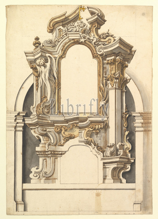 Two Alternate designs, Altar, 1700–1780, Pen, brown ink, brush, watercolor, lead point, graphite, ruled, compass construction, Scale, bottom, pen, sheet, 20 x 14 1/16, 50.8 35.7 cm, Drawings, Anonymous, Italian, Piedmontese, 18th century