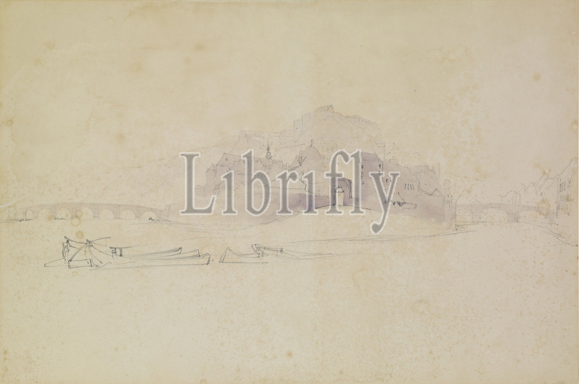 Two Bridges, 1833-1842 Artist, John Ruskin, Boat, Landscape, Drawing, Pencil, Sketch, Pre-Raphaelite, River, Wash drawing, Bridge