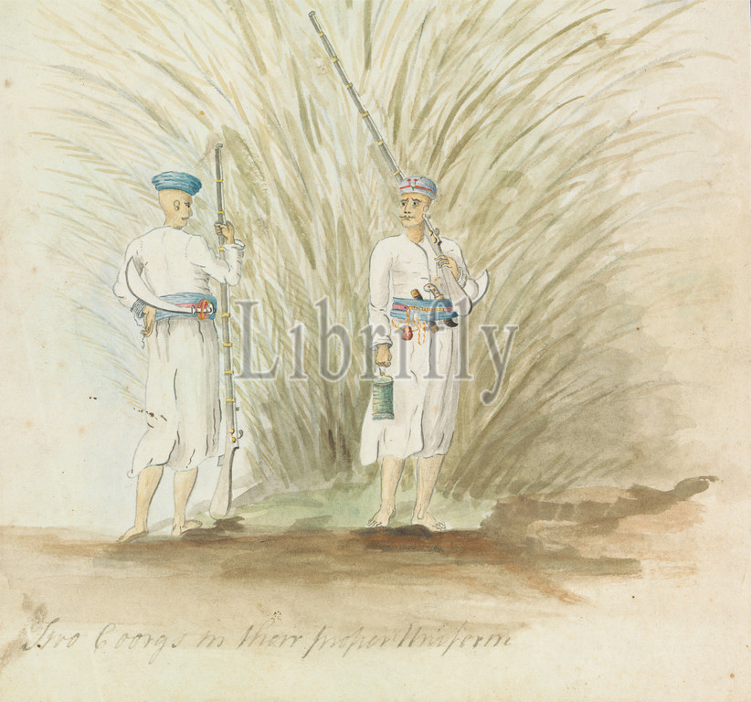 Two Coongs, Proper Uniform, Robert Mabon, died 1798, British, Watercolor, graphite, pen, black ink, medium, slightly textured, cream wove paper, Sheet