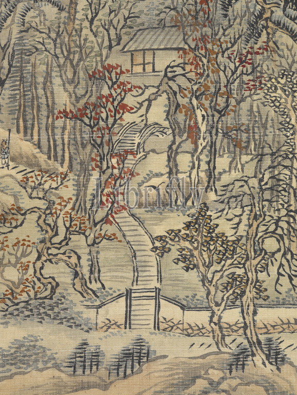 two landscape album leaves, single mount, Xue Hui, Chinese, Qing dynasty, period, Jiaqing, 1817, ink, color, silk, 47-1/4 x 13-1/8, overall, 28-1/2 x 10-3/8, image, signed, Peifen Hui seals, Peifen, Asian Art