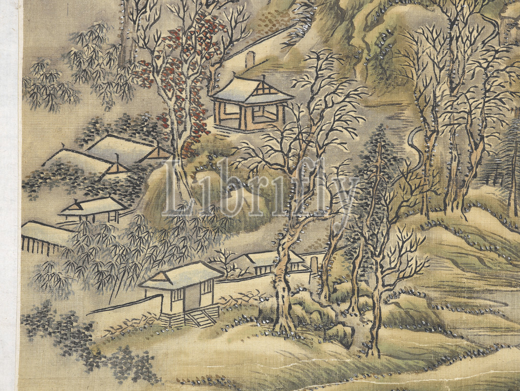 two landscape album leaves, single mount, Xue Hui, Chinese, Qing dynasty, period, Jiaqing, 1817, ink, color, silk, 47-1/4 x 13-1/8, overall, 28-1/2 x 10-3/8, image, signed, Peifen Hui seals, Peifen, Asian Art