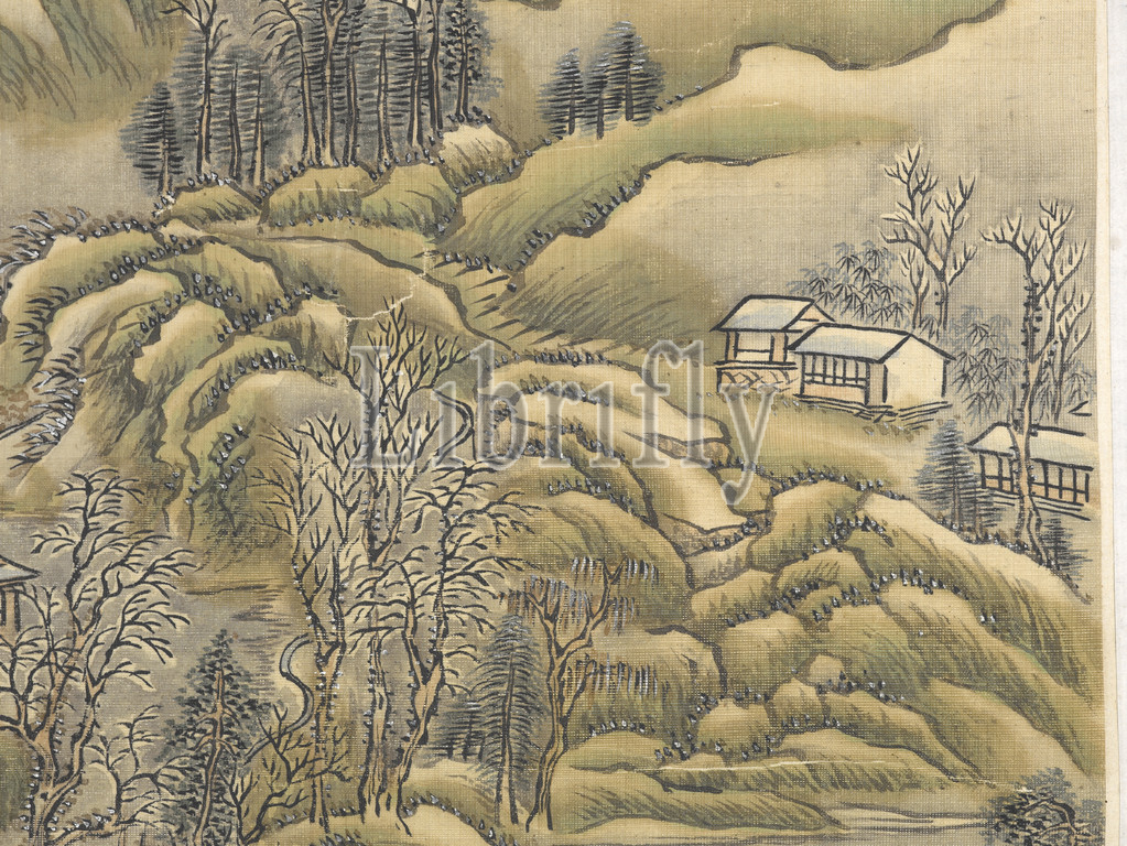 two landscape album leaves, single mount, Xue Hui, Chinese, Qing dynasty, period, Jiaqing, 1817, ink, color, silk, 47-1/4 x 13-1/8, overall, 28-1/2 x 10-3/8, image, signed, Peifen Hui seals, Peifen, Asian Art