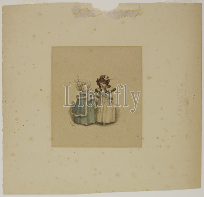 Two Little Girls, Fur-Trimmed Coats, 1900, Kate Greenaway, English, 1846-1901, England, Watercolor, graphite, cream wove paper, discolored, tan, 214
