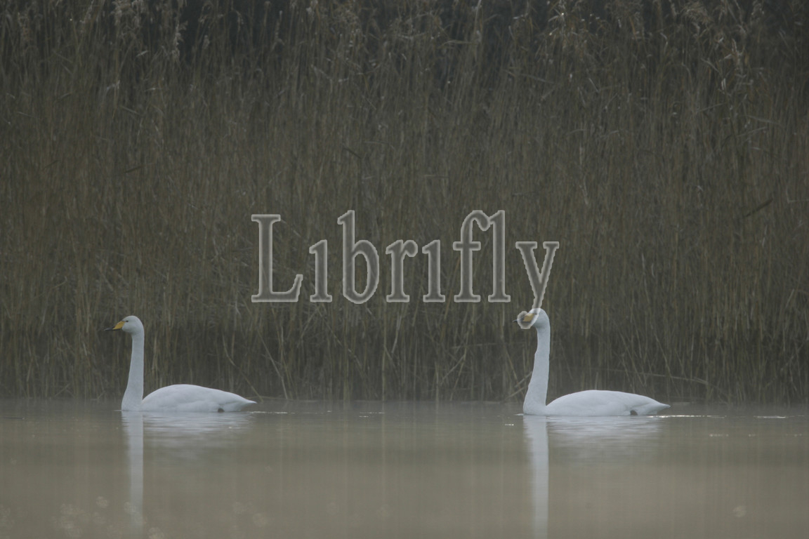 Two Whooper Swans swimming Netherlands, Cygnus cygnus