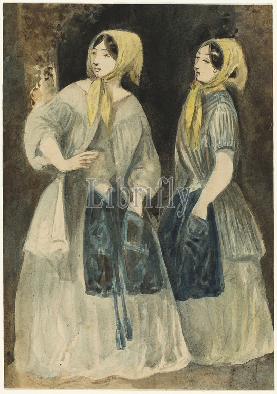 Two Women, Yellow Kerchiefs, n.d., Constantin Guys, French, 1802-1892, France, Brush, watercolor, traces, graphite, ivory wove paper, 310