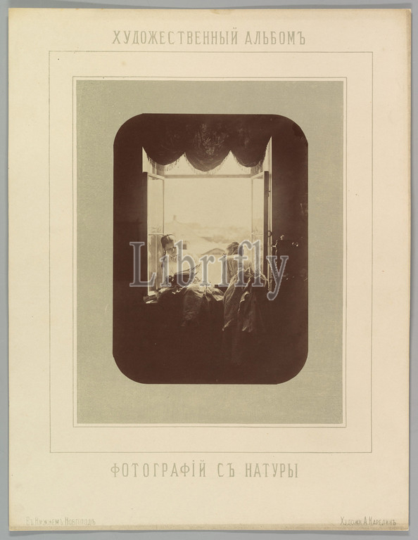 [Two Young Women at Window], ca. 1870, Albumen silver print from glass negative, Image: 8 1/2 × 6 1/8 in. (21.6 × 15.6 cm), Photographs, Andrei Osipovich Karelin (Russian, 1837–1906), Trained as an icon painter, Karelin operated a photographic studio and drawing school in the provincial town of Nizhny Novgorod. His repertoire included portraits, landscapes, and city views, but his most artistically ambitious photographs were genre scenes staged in domestic interiors, such as this view of two young women before an open window
