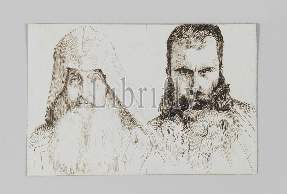 Types, Armenian Men, Jerusalem, Life, Our Lord Jesus Christ, La Vie de Notre-Seigneur Jésus-Christ, James Tissot, French, 1836-1902, Pen, ink, paper mounted, board, 1886-1887, 1889, Sheet, 4 11/16 x 7 1/8, 11.9 x 18.1 cm, armenian, Armenian Men, beard, bearded, drawing, French, hood, IMLS, ink, Jerusalem, men, mounted, paper, Tissot, typology