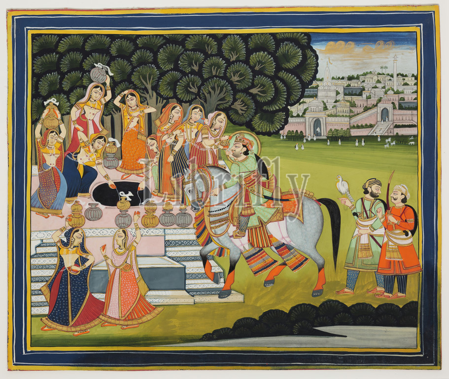 Unknown, Indian, Encounter, Well, early 19th Century, Opaque watercolor, gold, silver, paper, Sheet, 9 1/4