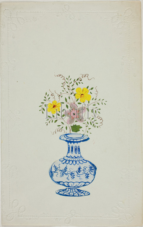 Untitled Valentine, Blue, White Vase, Flowers, c. 1850, George Kershaw, English, 19th century, England, Collaged elements, watercolor, embossed ivory wove paper, 180