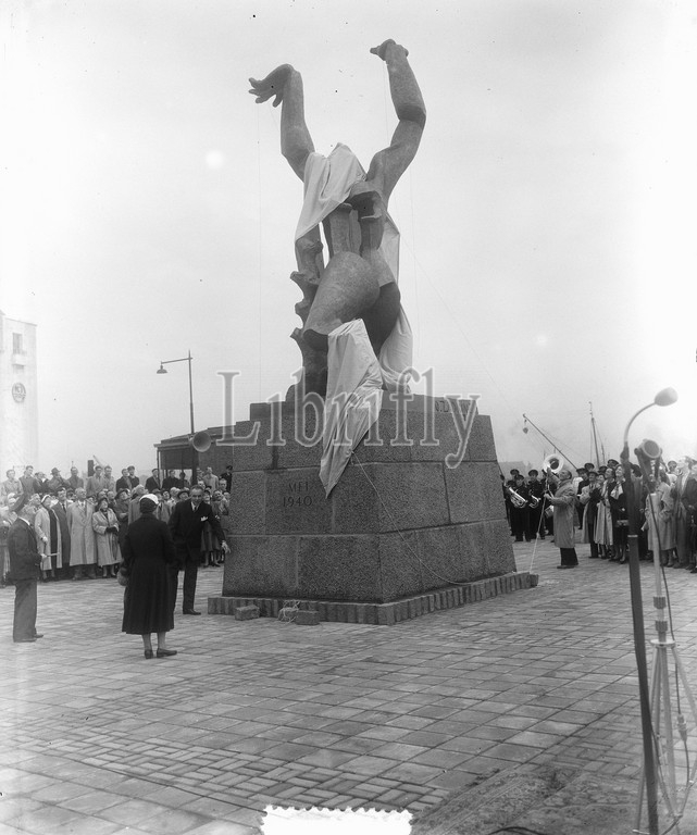Unveiling, Mrs, Van Walsum, statue, Zadkine, Rotterdam, 15, 1953, statues, sculpture, unveilings, Netherlands, 20th century, press agency photo, news to remember, documentary, historic photography, 1945-1990, visual stories, human history, Twentieth Century, moments in time