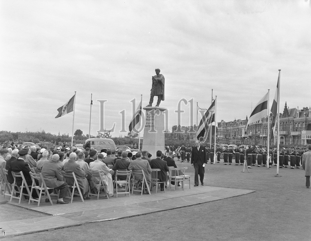 Unveiling statue Emperor Traianus Nijmegen, Mayor Hushinckx, 6 September 1956, statues, unveilings, Netherlands, 20th century, press agency photo, news to remember, documentary, historic photography, 1945-1990, visual stories, human history, Twentieth Century, moments in time