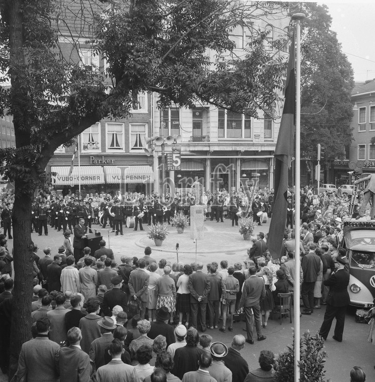 Unveiling of the statue Het Amsterdams Lieverdje on the Spui, overview of the ceremony, 10 September 1960, Disclosures, statues, overviews, ceremonies, The Netherlands, 20th century press agency photo, news to remember, documentary, historic photography 1945-1990, visual stories, human history of the Twentieth Century, capturing moments in time