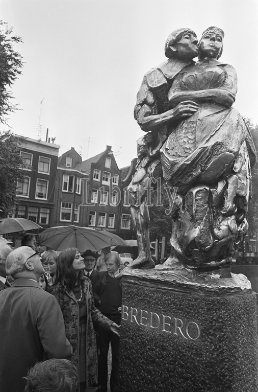 Unveiling, statue, Nieuwmarkt, Amsterdam, 26 September 1968, commemorations, unveilings, Netherlands, 20th century, press agency photo, news to remember, documentary, historic photography, 1945-1990, visual stories, human history, Twentieth Century, moments in time