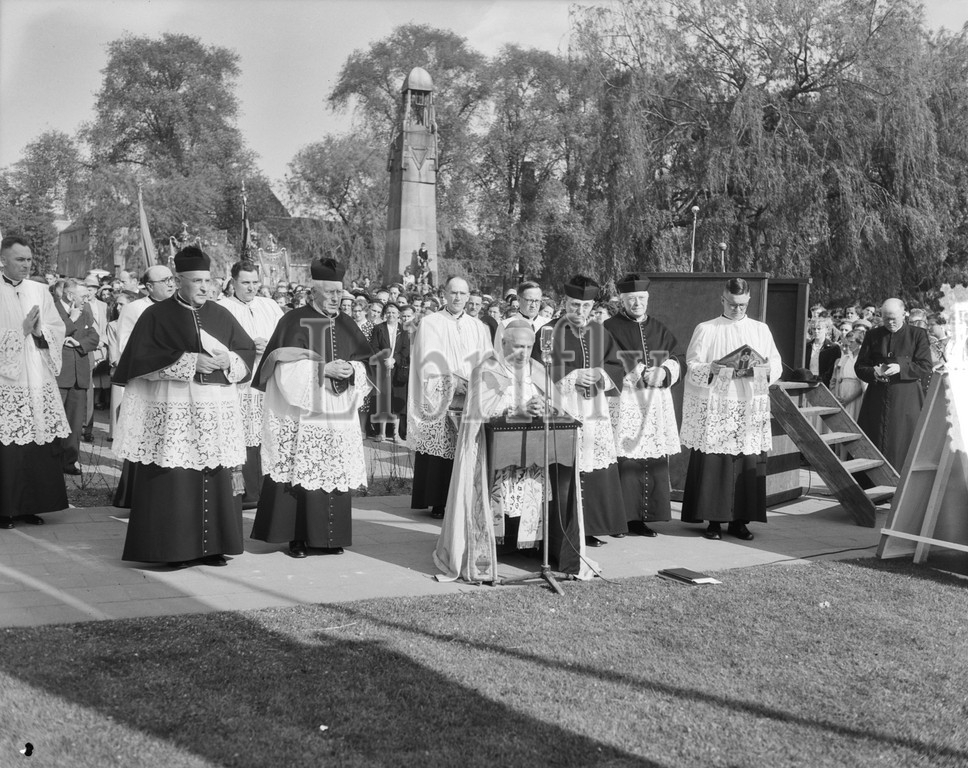 Unveiling of a statue of the Virgin Mary in Den Bosch by Msgr. W. Mutsaerts, May 3, 1953, unveilings, The Netherlands, 20th century press agency photo, news to remember, documentary, historic photography 1945-1990, visual stories, human history of the Twentieth Century, capturing moments in time