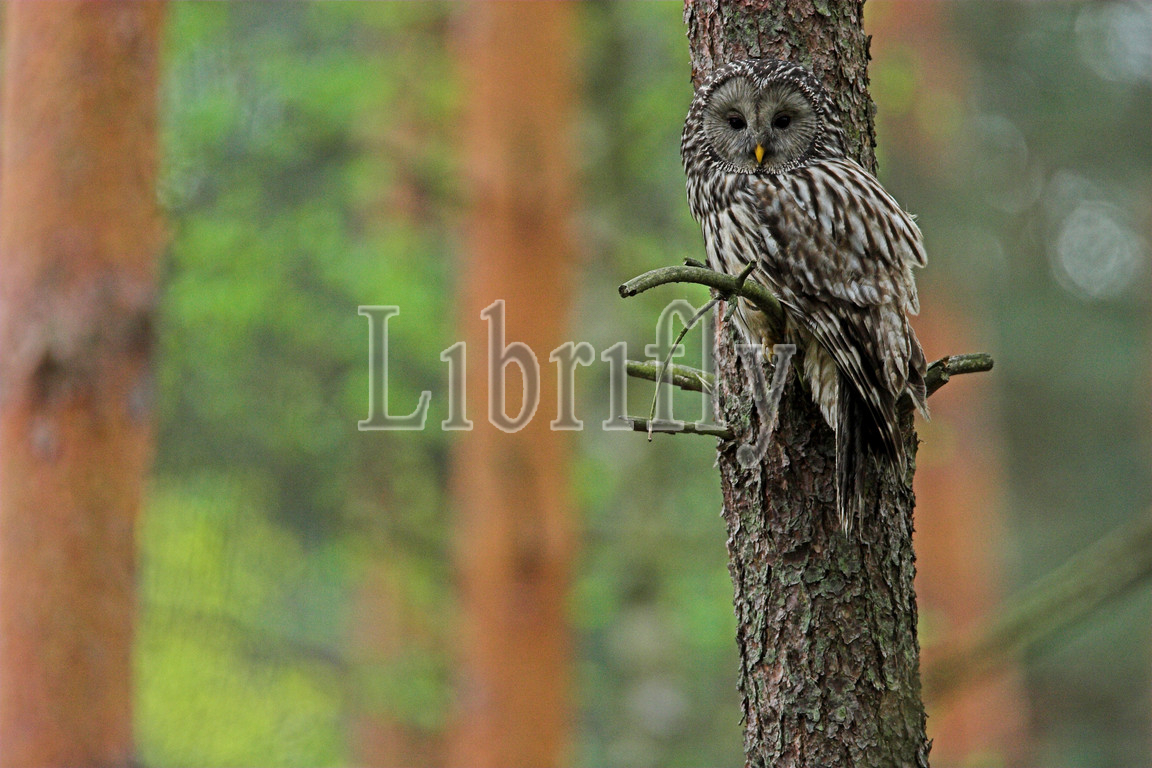 Ural Owl in tree during daytima, Strix uralensis