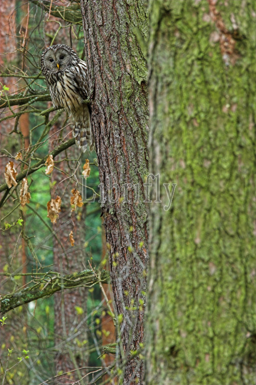 Ural Owl in tree during daytima, Strix uralensis