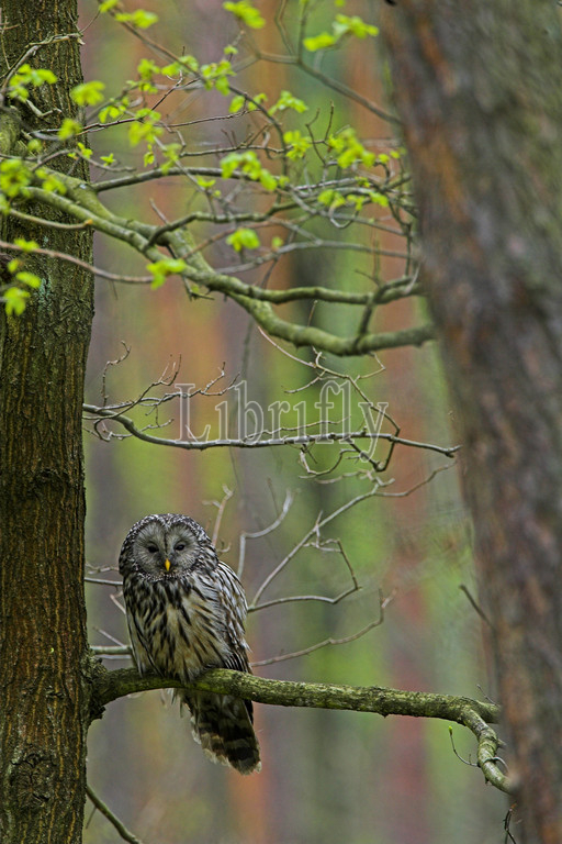 Ural Owl in tree during daytima, Strix uralensis