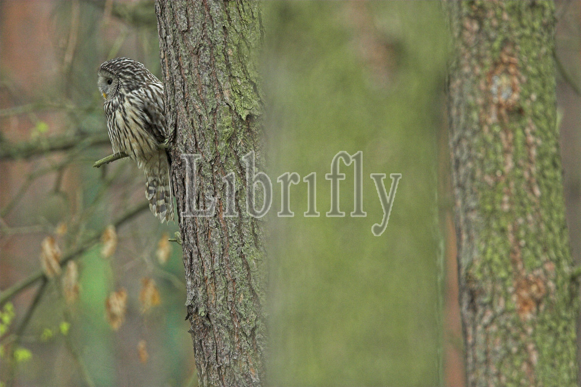 Ural Owl in tree during daytima, Strix uralensis