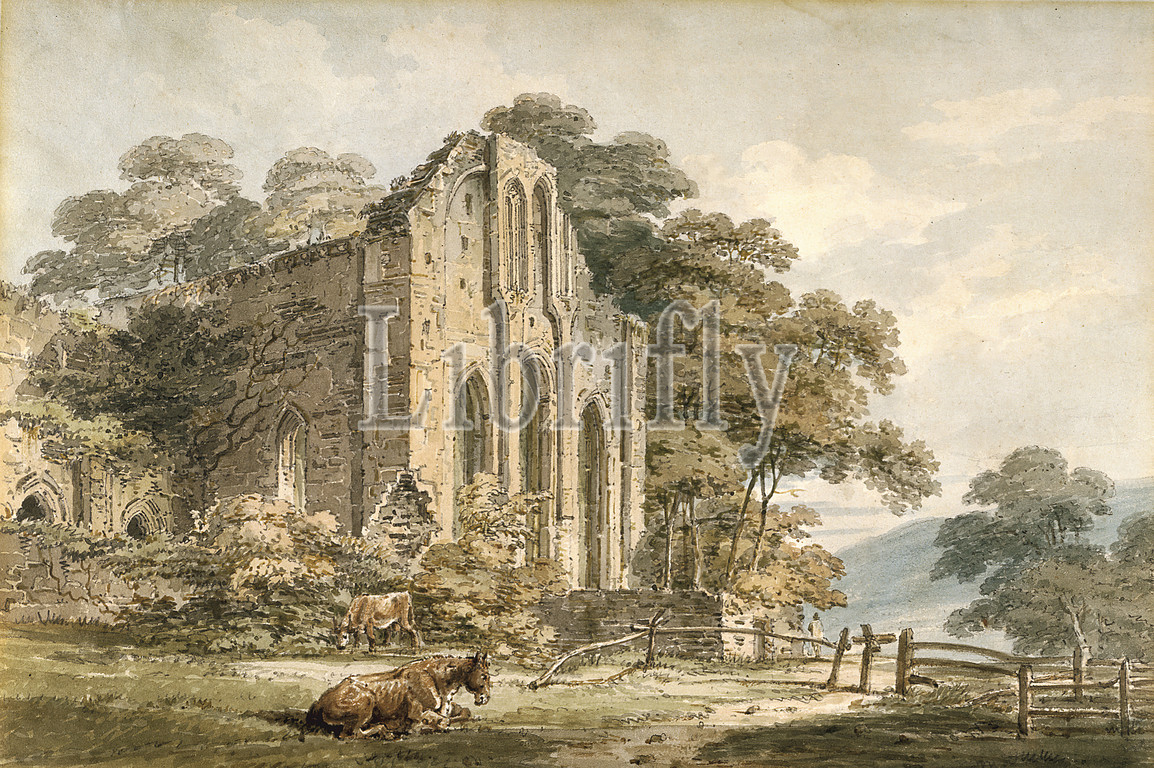 Valle Crucis Abbey, Denbighshire, North Wales, Thomas Girtin (British, 1775-1802), 1794, watercolor over pencil on white wove paper, 7 x 10-3/8 in