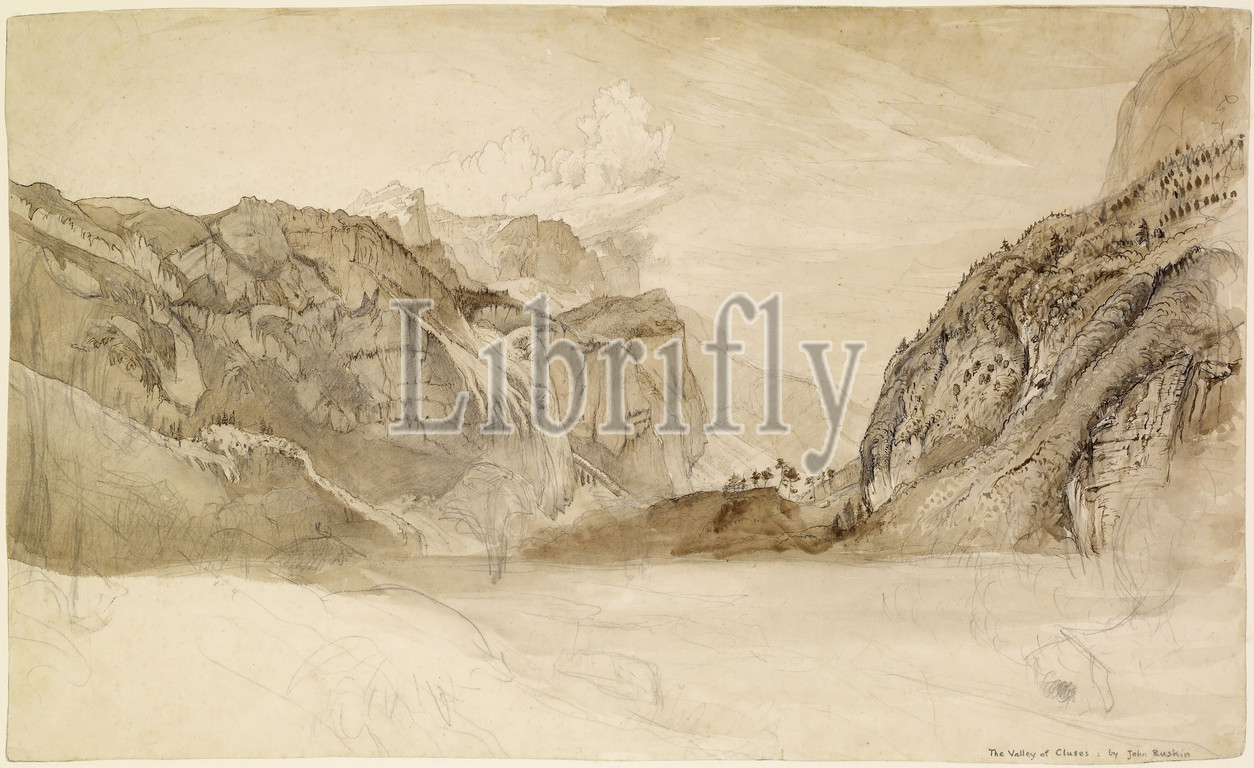 Valley, Cluses, Savoy, 1849 Artist, John Ruskin, Cluses, located, Arve Valley, region Faucigny, France, Landscape, Mountain, Alps, 19th Century, FrancePre-Raphaelite, Wash drawing