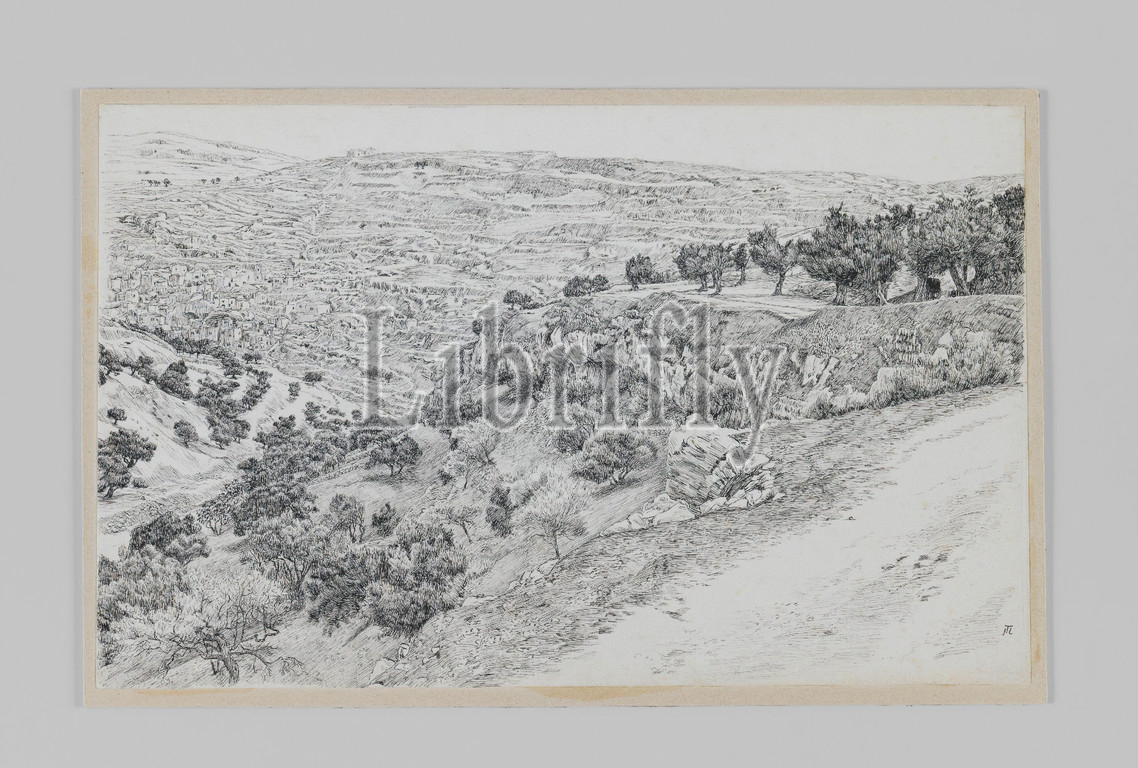 Valley, Hinnom, Haceldama, Life, Our Lord Jesus Christ, La Vie de Notre-Seigneur Jésus-Christ, James Tissot, French, 1836-1902, Pen, ink, 1886-1887, 1889, Sheet, 5 3/4 x 9 3/16, 14.6 x 23.3 cm, countryside, drawing, landscape, sketch