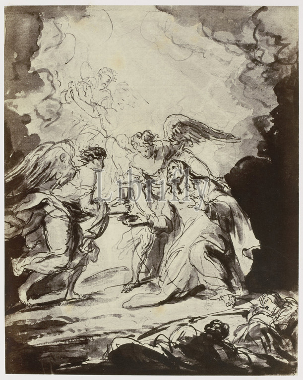 Van Dyck [Vandyke], The Agony in the Garden, Photoreproduction of drawing in 'The Reveley Collection of Drawings at Brynygwin', fig. 8., Philip Henry Delamotte, Thomas Frederick Hardwich, 1855 - 1858, paper, albumen print, height 301 mm × width 238 mm