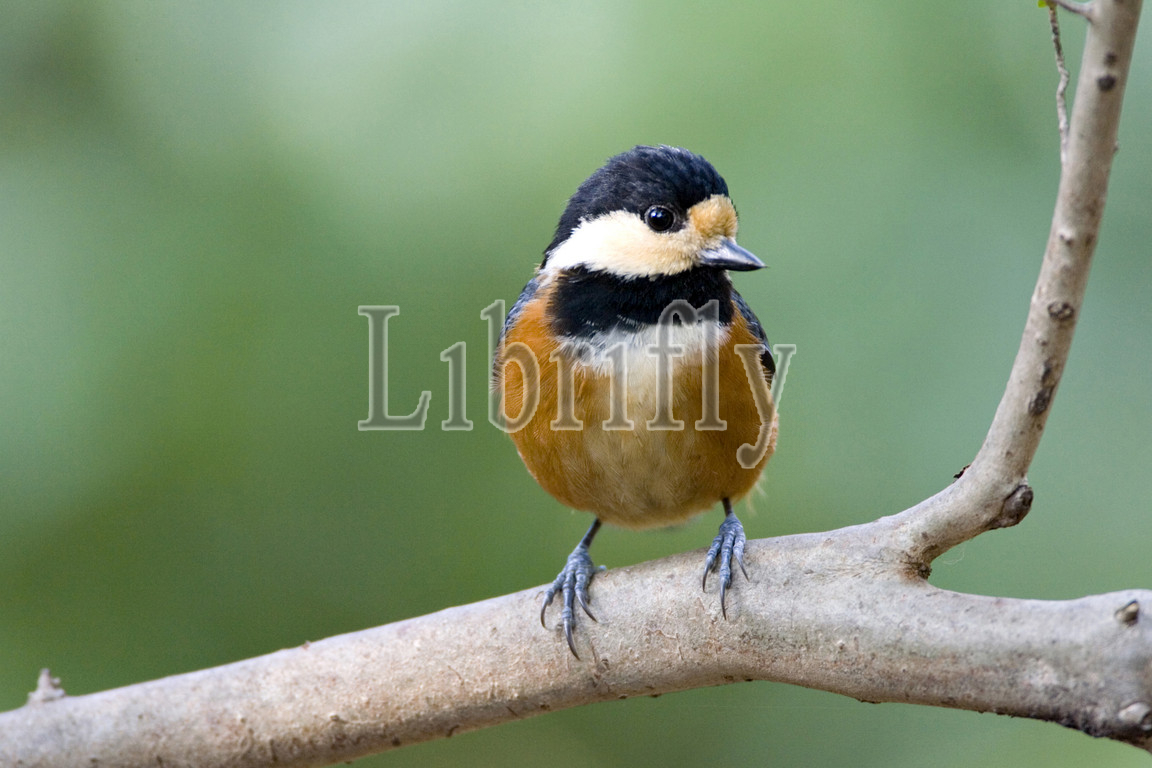 Varied Tit adult perched on a branch, Sittiparus varius