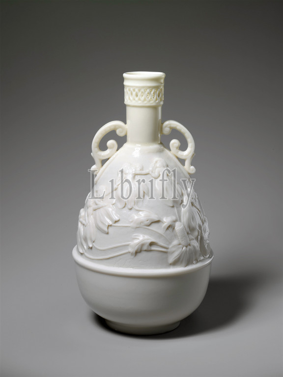 Vase, ca. 1892, Made in Trenton, New Jersey, United States, American, Porcelain, H. 7 1/2 in. (19.1 cm), Ceramics, Walter Scott Lenox left Willets in 1889 to found the Ceramic Art Company, later Lenox China. Production of art porcelain was the company’s sole aim. In a departure from the firm’s characteristic decoration in enamels and raised gold paste, the decorator Kate Sears, about whom little is known, painstakingly carved delicate vignettes on the sides of porcelain vessels such as this vase, with its nymphs in petal skirts personifying flowers