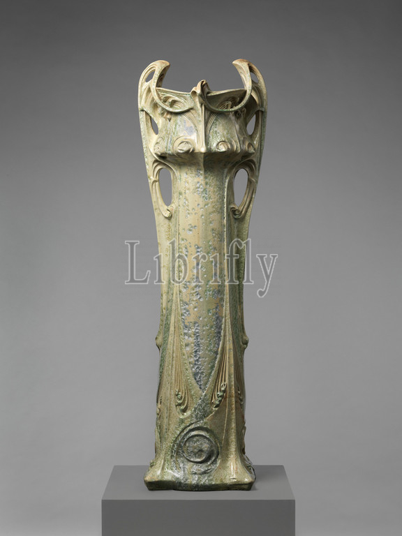 Vase des Binelles, 1903, Stoneware, 51 1/4, 15 3/8, 5/8, 130.2, 39.1, 39.7 cm, Ceramics-Porcelain, vase, extraordinary feat, Art Nouveau, ceramics, French architect, Hector, Guimard, designed, iconic Paris, Métro, entrances, Monumental, scale, vase des, binelles, architectural presence, strong organic, form, curvilinear handles, evocative, ornate cast-iron, elements, buildings