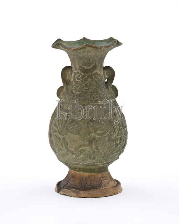vase with fluted mouth and molded floral design, Unknown, Southern Song dynasty, 1300-1350, stoneware with green glaze, Quanzhou ware, 6-1/8 in., Asian Art