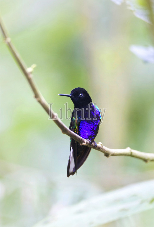 Velvet-purple Coronet perched on a twig, Boissonneaua jardini