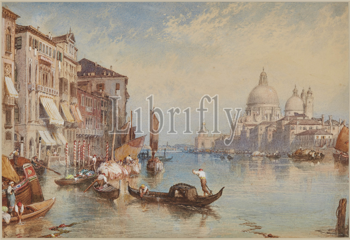 Venice: Santa Maria della Salute from the Grand Canal, Myles Birket Foster (English, 1825-1899), about 1870, watercolor and gouache on white paper, 8 x 11-3/4 in., initialed in black, LL: FB