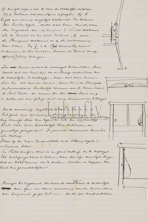 Verso of a loose drawing between the front endpaper and sheet 1 from a sketchbook with 79 sheets, Furniture designs, Gerrit Willem Dijsselhof, c. 1901